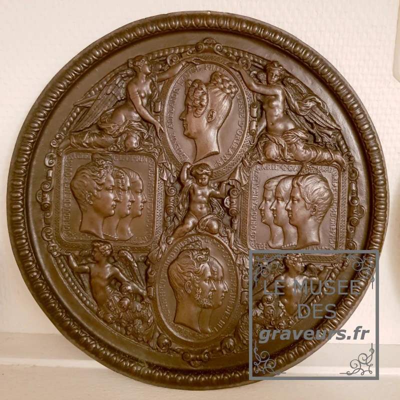Paire de médaillons en bronze bronzé de la médaille de la famille royale de Louis-Philippe Ier.